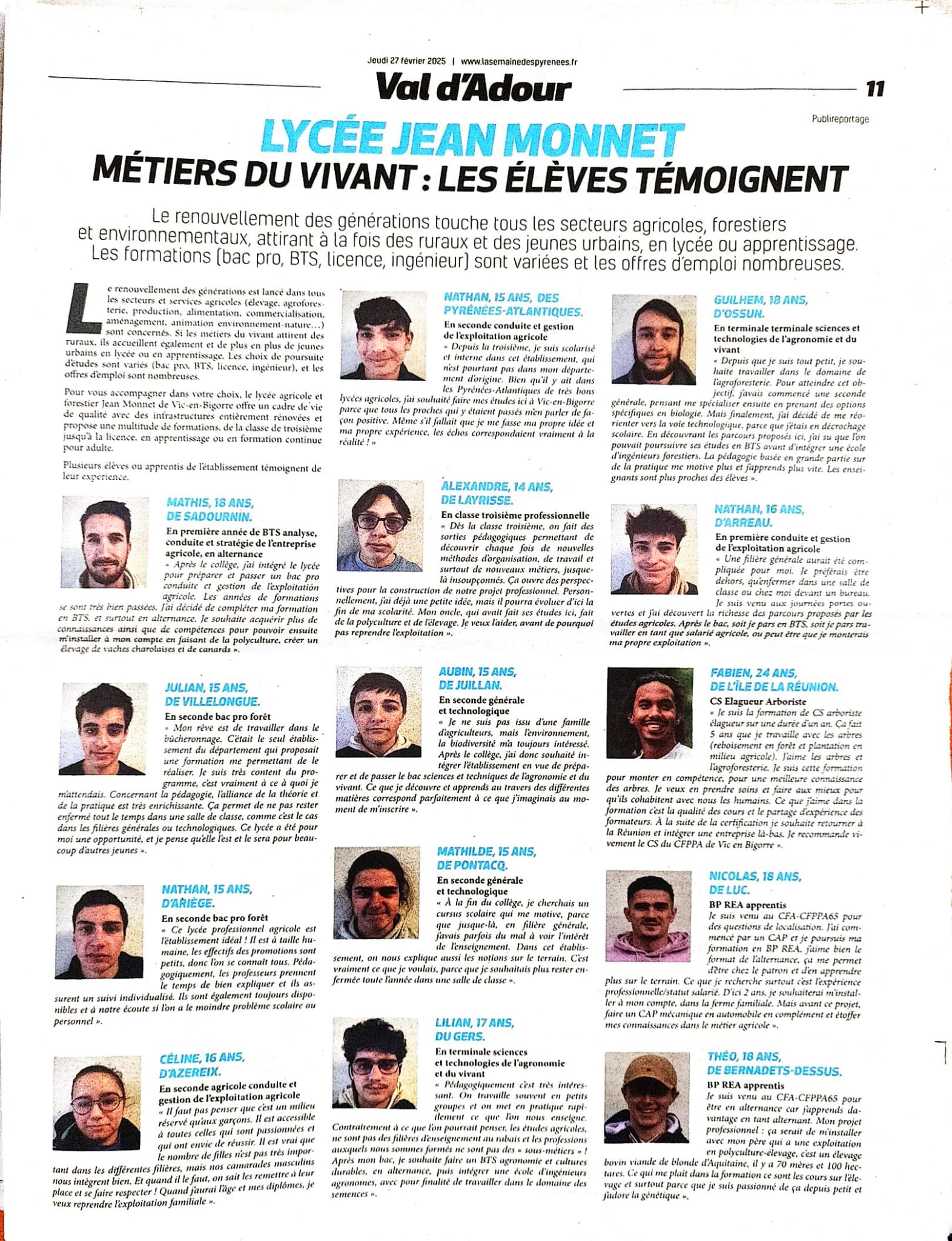 Crédit photos : La République des Pyrénées, La Semaine des Pyrénées, La Dépêche du Midi, Le petit journal, lycée Jean Monnet