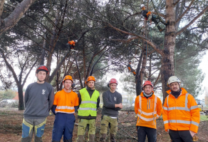 Des apprentis arboristes-grimpeurs au chevet des 26 pins parasols de l’un des ronds points les plus fréquentés de Tarbes